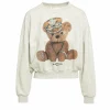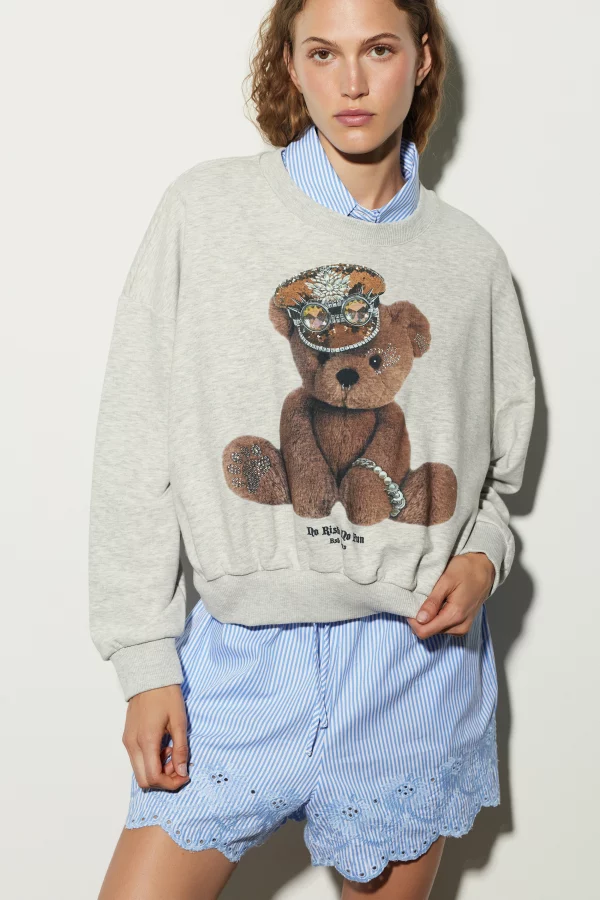 Sudadera, mangas largas, escote redondo, estampado osito de peluche, strass, diseño recto
