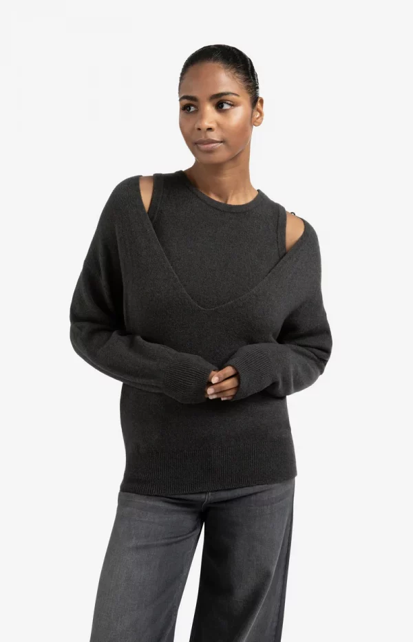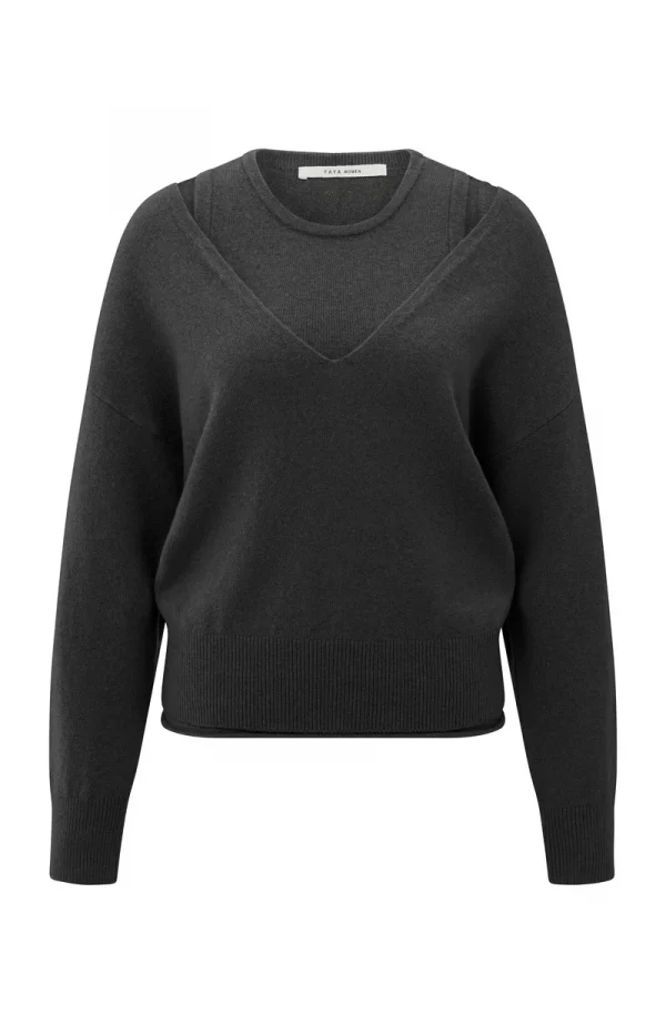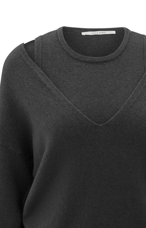 Suéter de punto con escote en V profundo y top en capas.