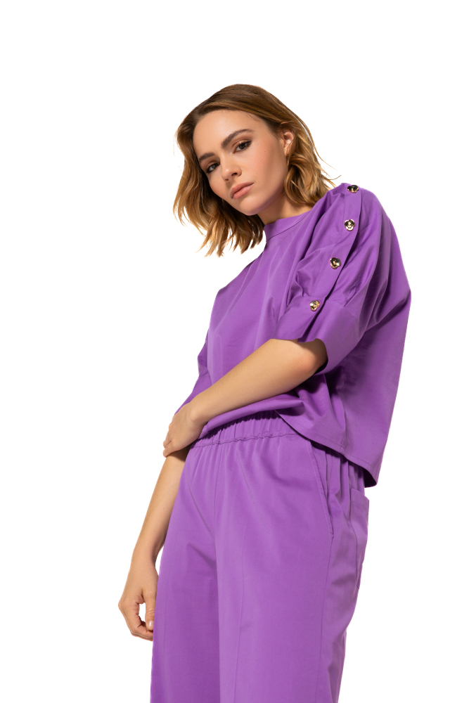 Top de algodón fino con detalle en las mangas