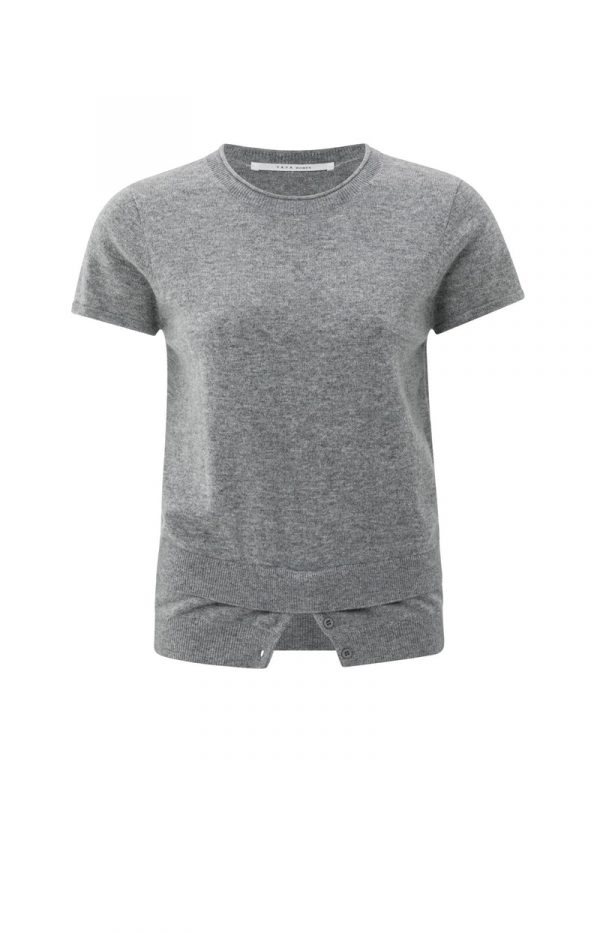 Este top de punto fino presenta mangas cortas, cuello redondo y corte holgado. El dobladillo a capas con botones crea la ilusión de una doble capa, dándole un toque divertido y moderno. Confeccionado en un tejido suave y cómodo. Perfecto para un look elegante e informal. La modelo mide 175 cm y usa la talla S.