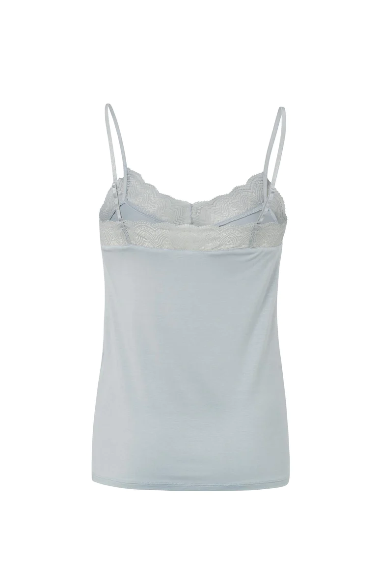 Top de tirantes con escote en pico y detalles de encaje en corte ajustado.