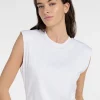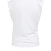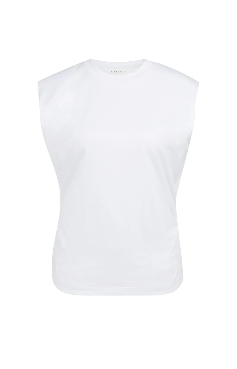 Esta elegante blusa sin mangas presenta un escote redondo y un corte clásico y cómodo. Los sutiles pliegues en las costuras laterales crean una silueta refinada con un toque desenfadado. De largo clásico y confeccionada en un tejido suave y liso, es perfecta tanto para un look casual como para uno más sofisticado. La modelo mide 176 cm y lleva la talla S.