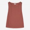 Top terracota. Tejido con textura. Regular fit. Cuello barco. Sin mangas. Abertura lateral en bajos. Longitud desde el hombro: 55 cm (talla S).