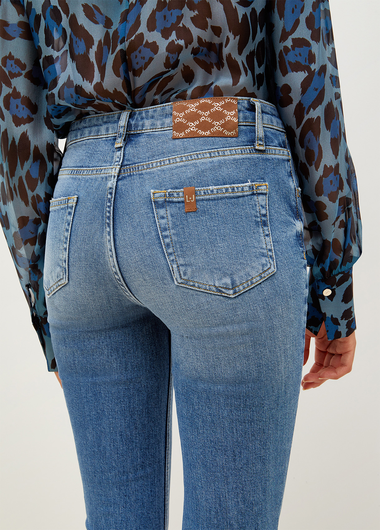 Vaqueros ecosostenibles en denim de algodón elástico con pinza marcada