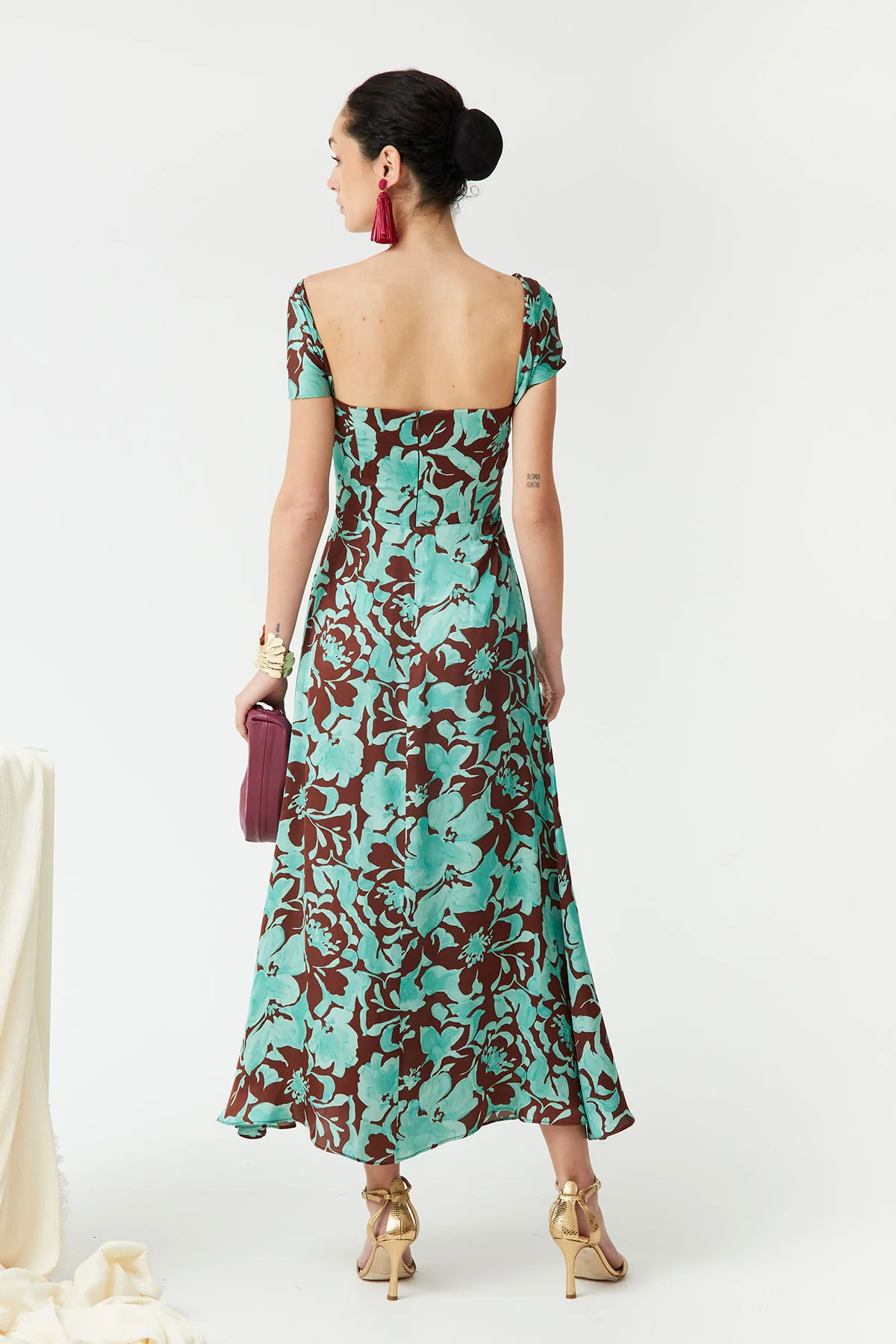 Combínalo con sandalias altas y accesorios color vino para un look de invitada perfecta.