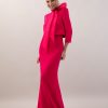 Vestido ceremonia media manga de gasa con bolero y lazada.