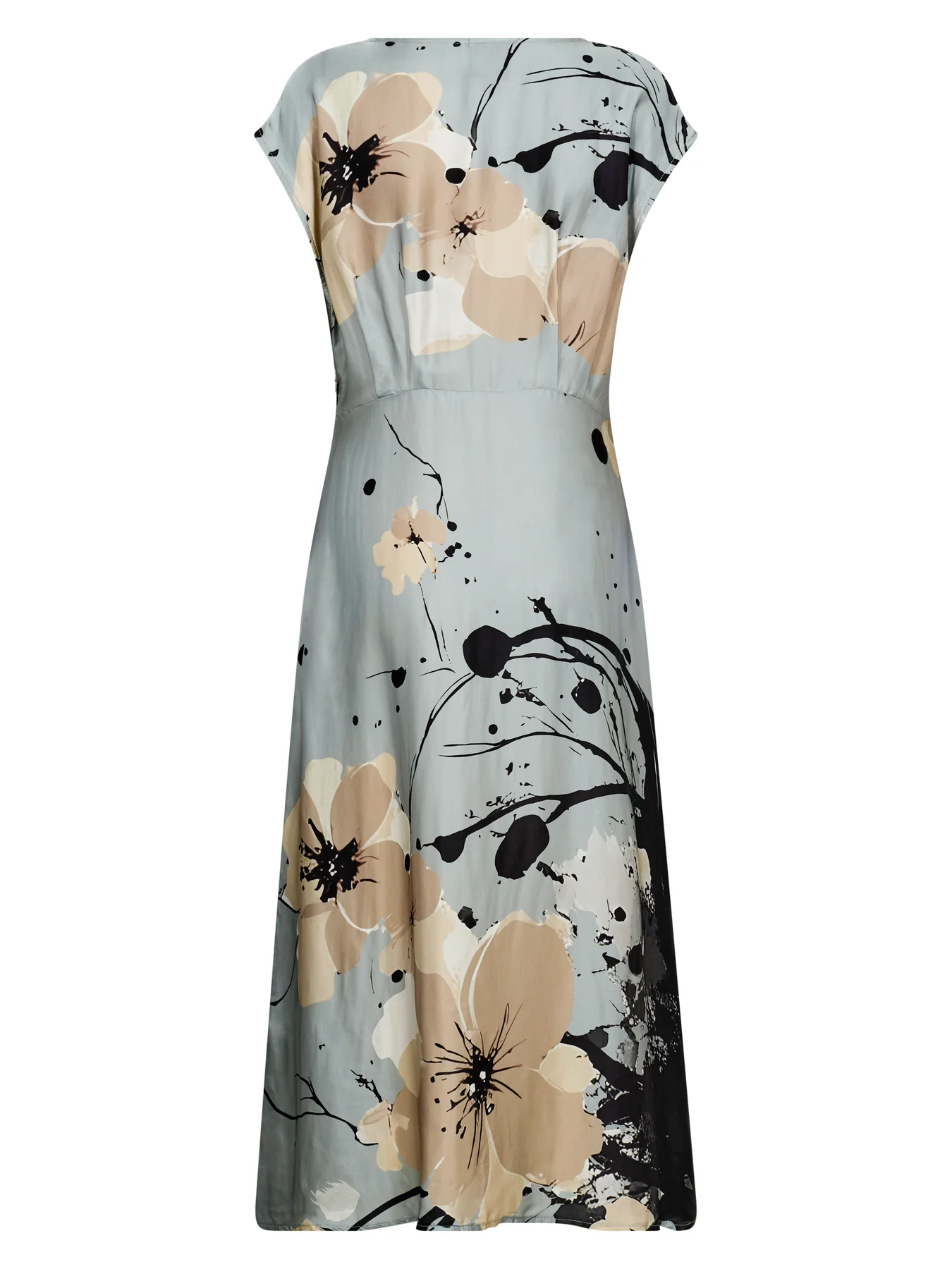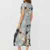 Este vestido tiene un corte femenino con una bonita caída que se adapta cómodamente al cuerpo. El estampado le da personalidad, mientras que las mangas cortas le aportan sencillez y versatilidad. La cintura crea una silueta favorecedora y la espalda es sencilla. Se puede combinar con zapatos planos para el día a día o con tacones para ocasiones más especiales.