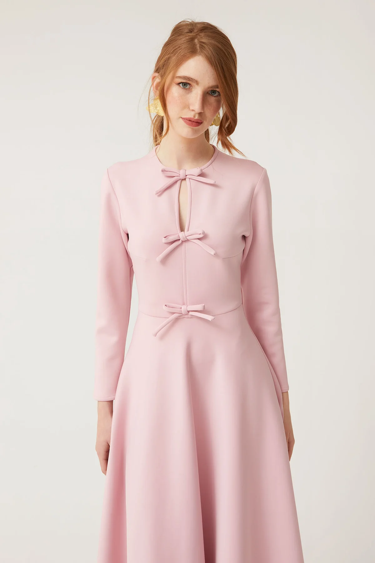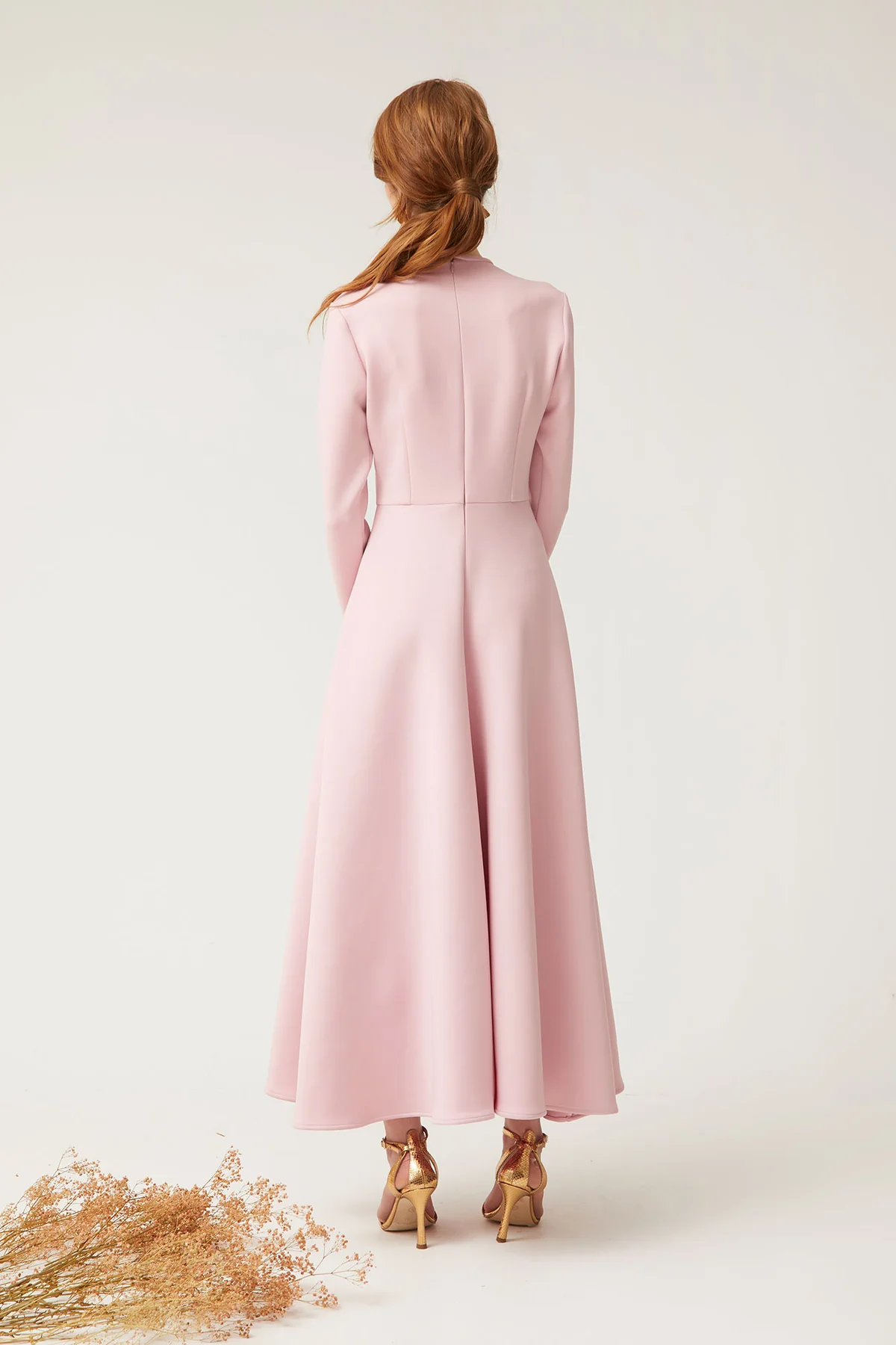 Haz una declaración de estilo con este impresionante vestido rosa midi, diseñado para realzar tu elegancia y feminidad. Con un corte ajustado en la parte superior y una falda de vuelo fluida, este diseño es la combinación perfecta de sofisticación y movimiento.