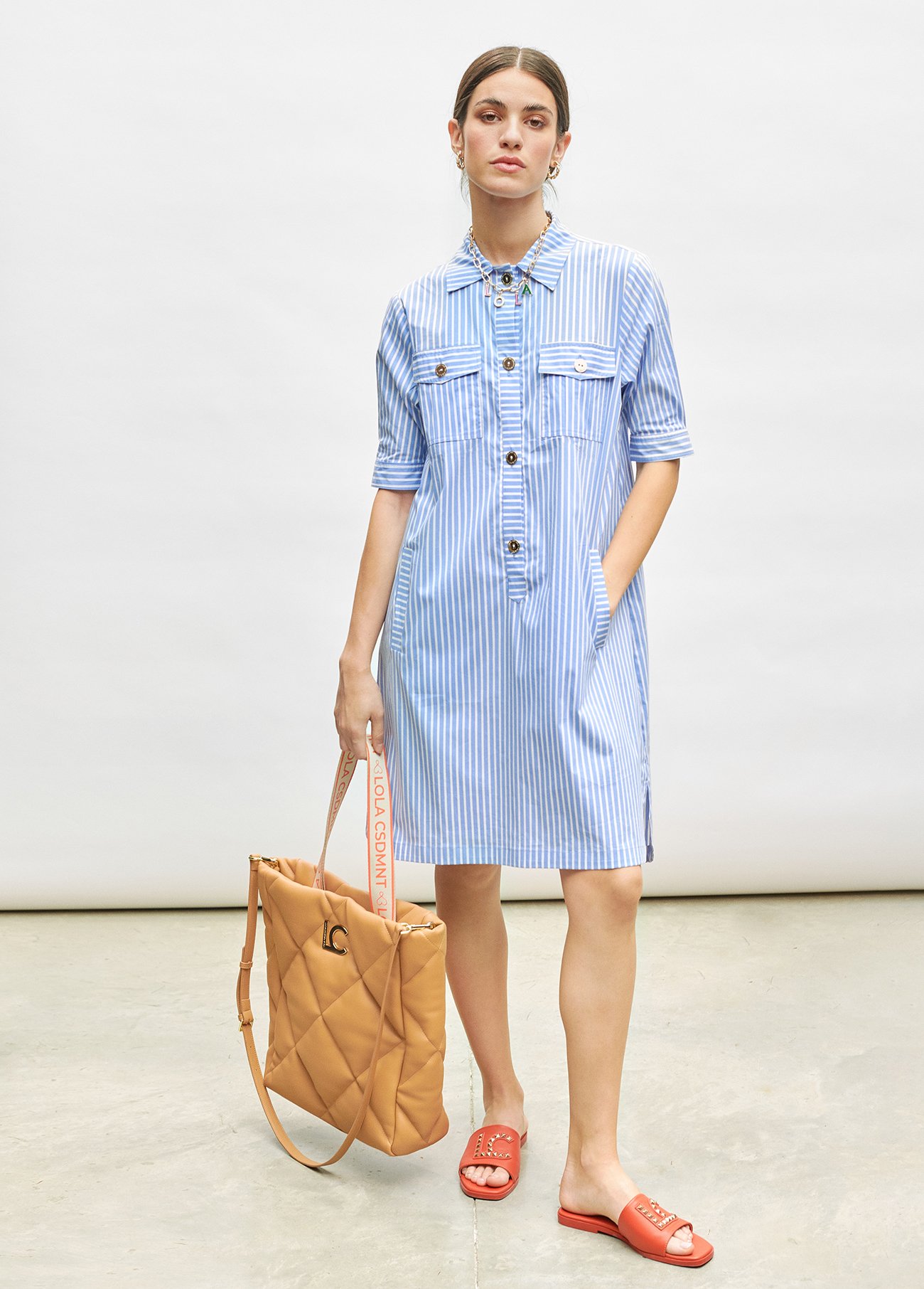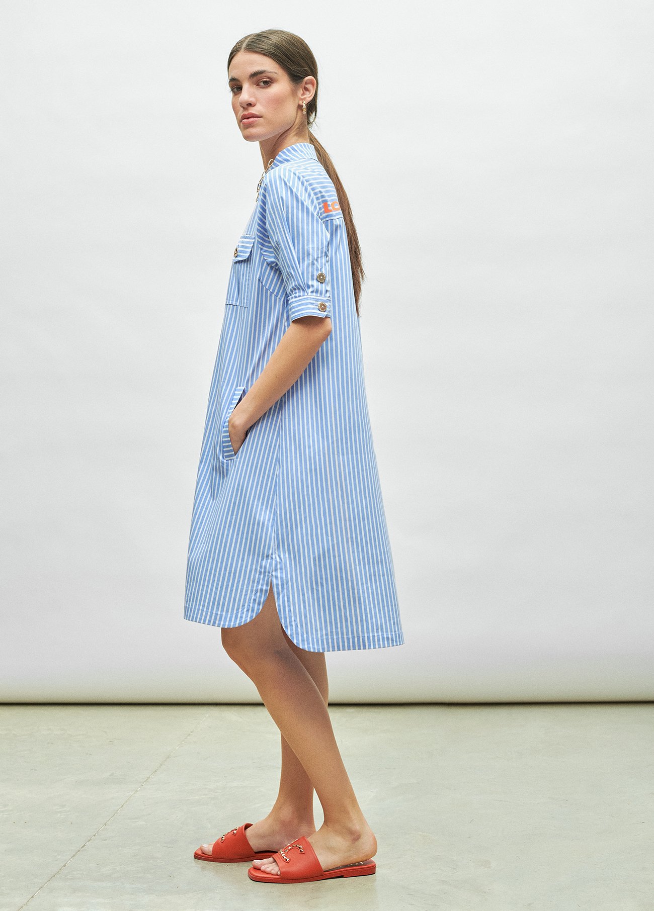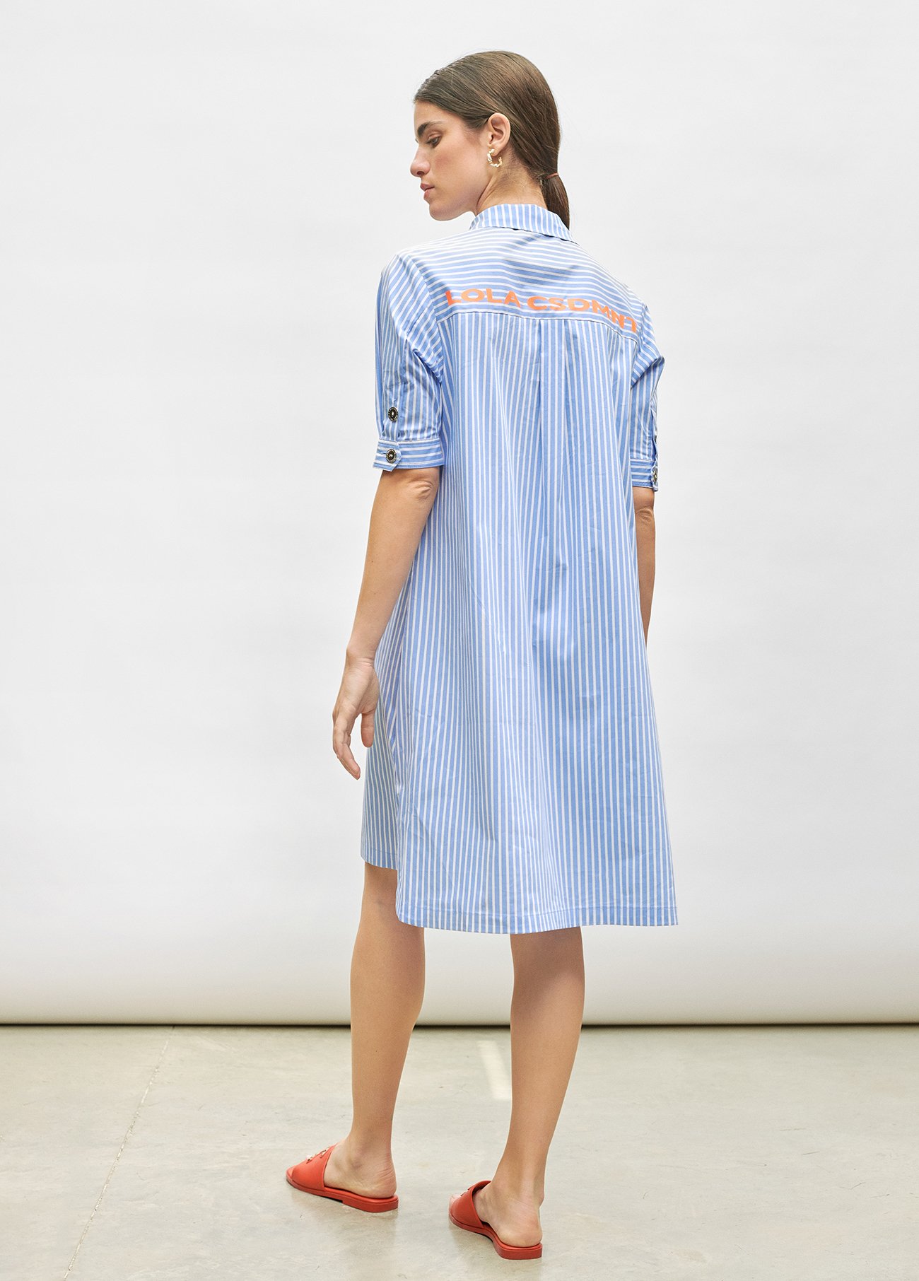 Vestido corto con cuello camisero y logo en espalda.