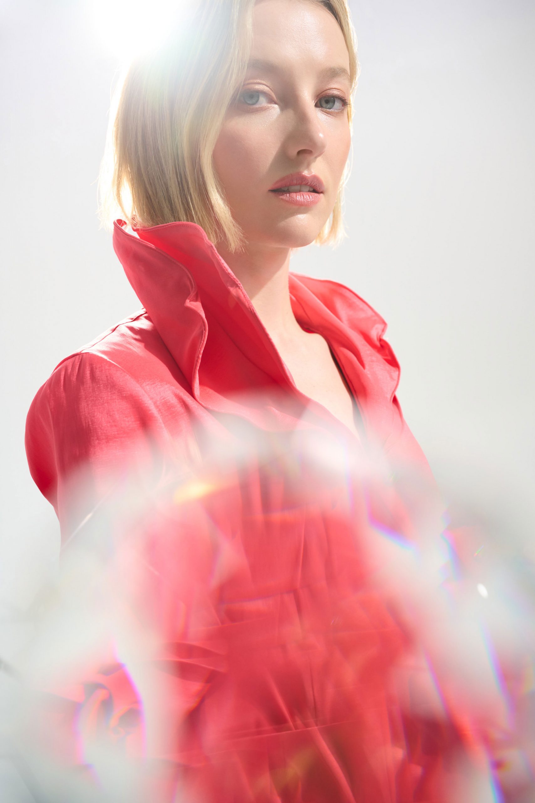 Este vestido de tafetán elástico, esculpido pero fluido, presenta cuello de doble solapa con varilla, fajín en la cintura y falda plisada. El tirador de cremallera con pedrería le da un toque refinado a su silueta segura. Forma parte de la colección Signature.