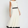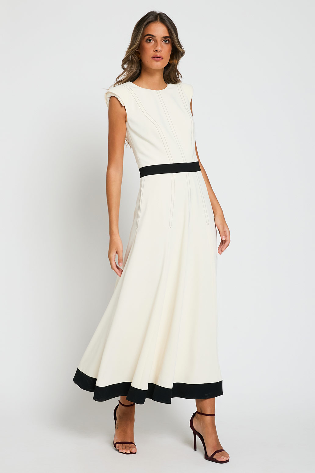 Vestido sin mangas en crepe con corte y pespuntes