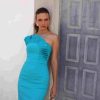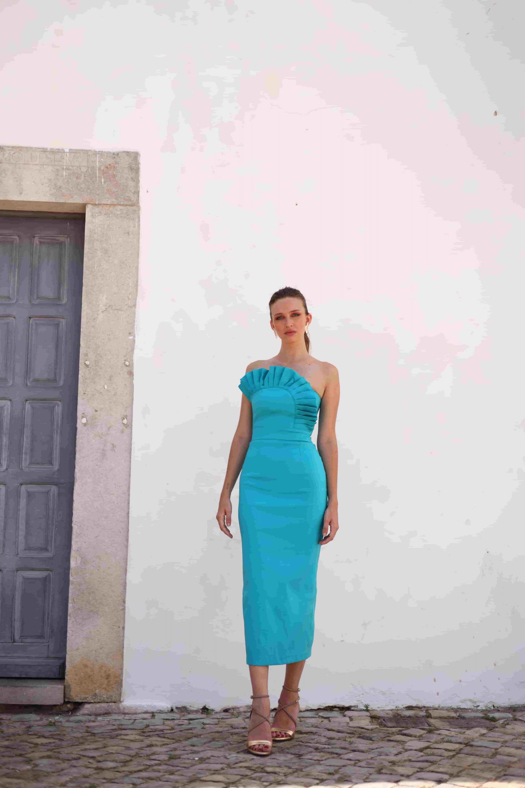 Vestido palabra de honor volante SUCRE MAGNOLIA KOBUS