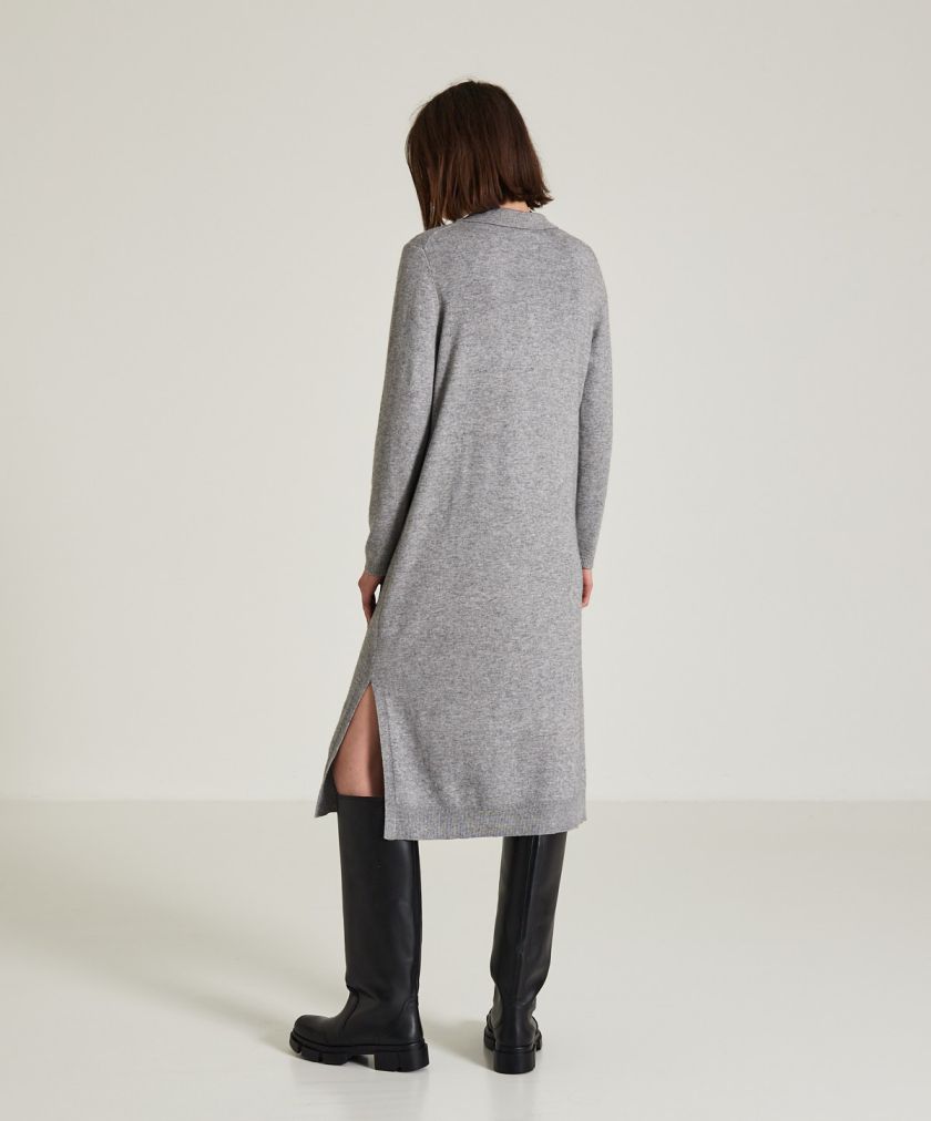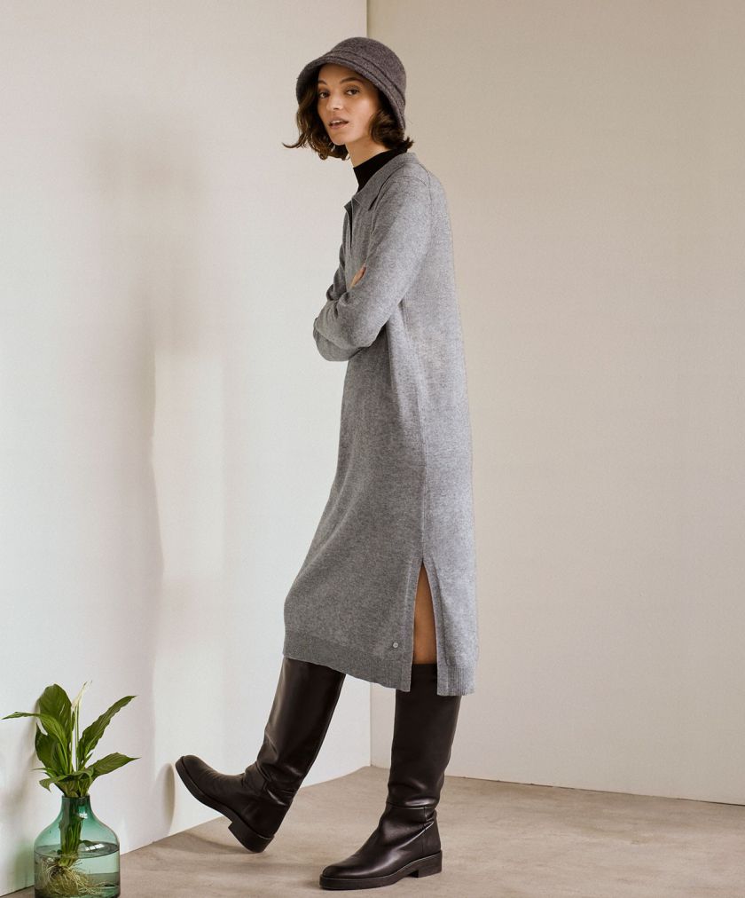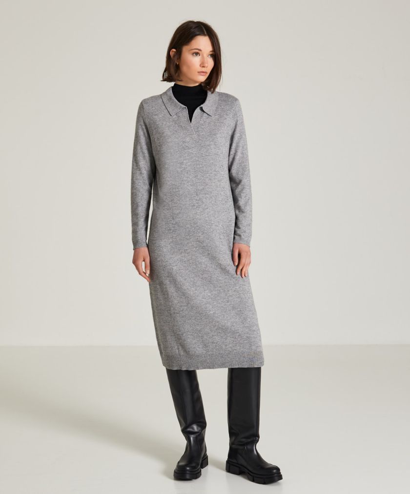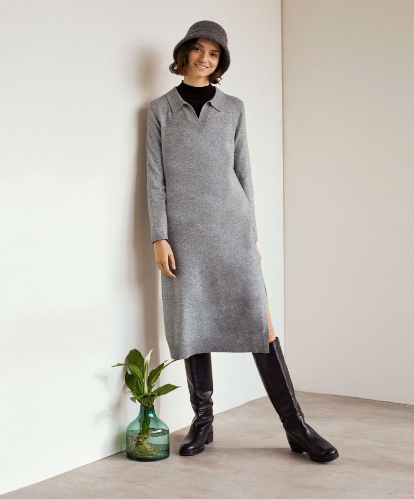 Vestido de manga larga y cuello polo. Corte midi. Diseñado para un fit acomodado a la figura, puede elegir su talla habitual.