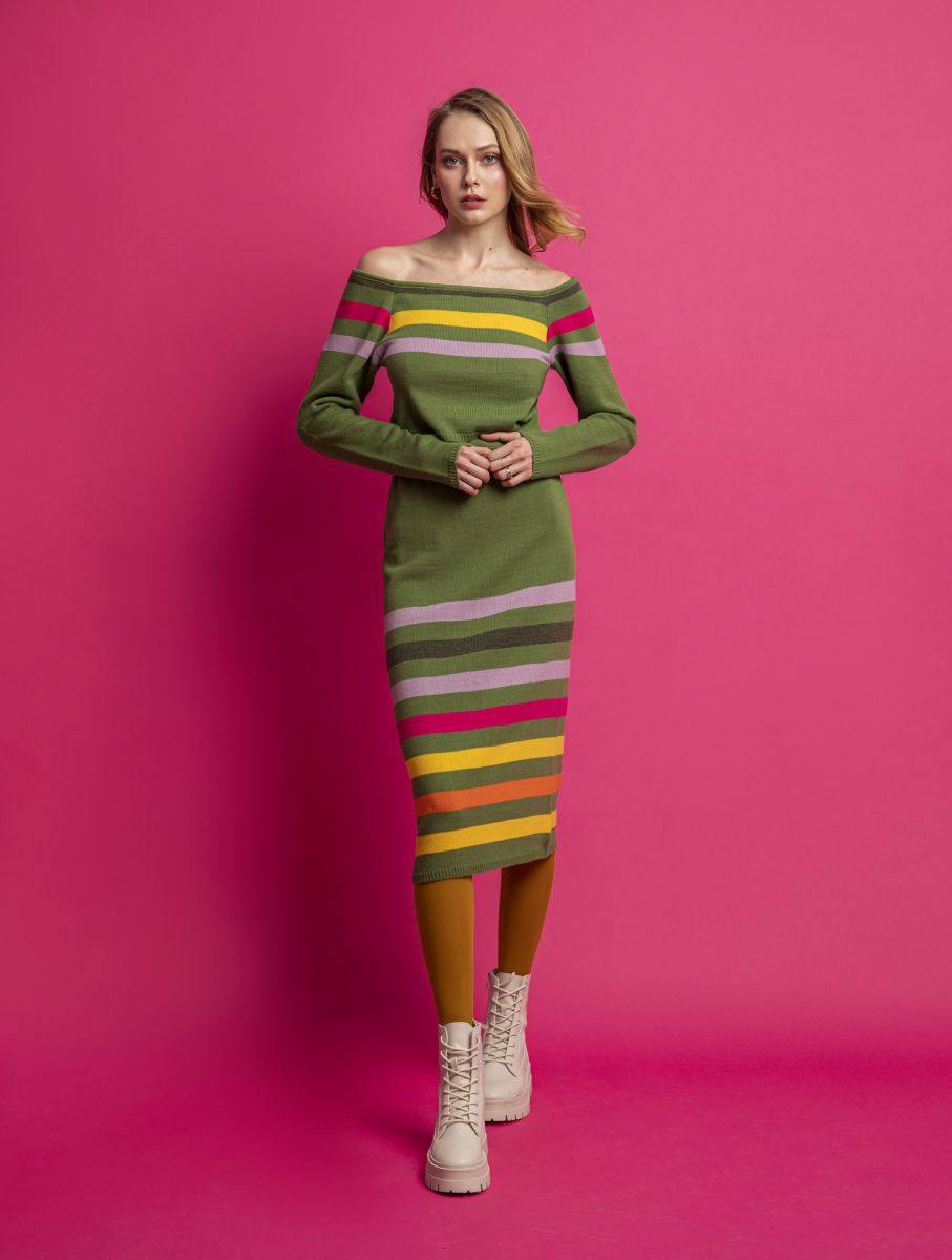 Vestido punto rayas multicolor