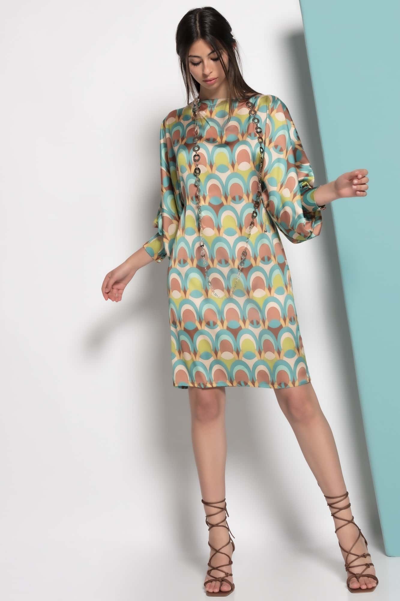 Vestido mini oversize , estampado étnico , puños anchos con botones. Sin duda, un acierto seguro para triunfar.