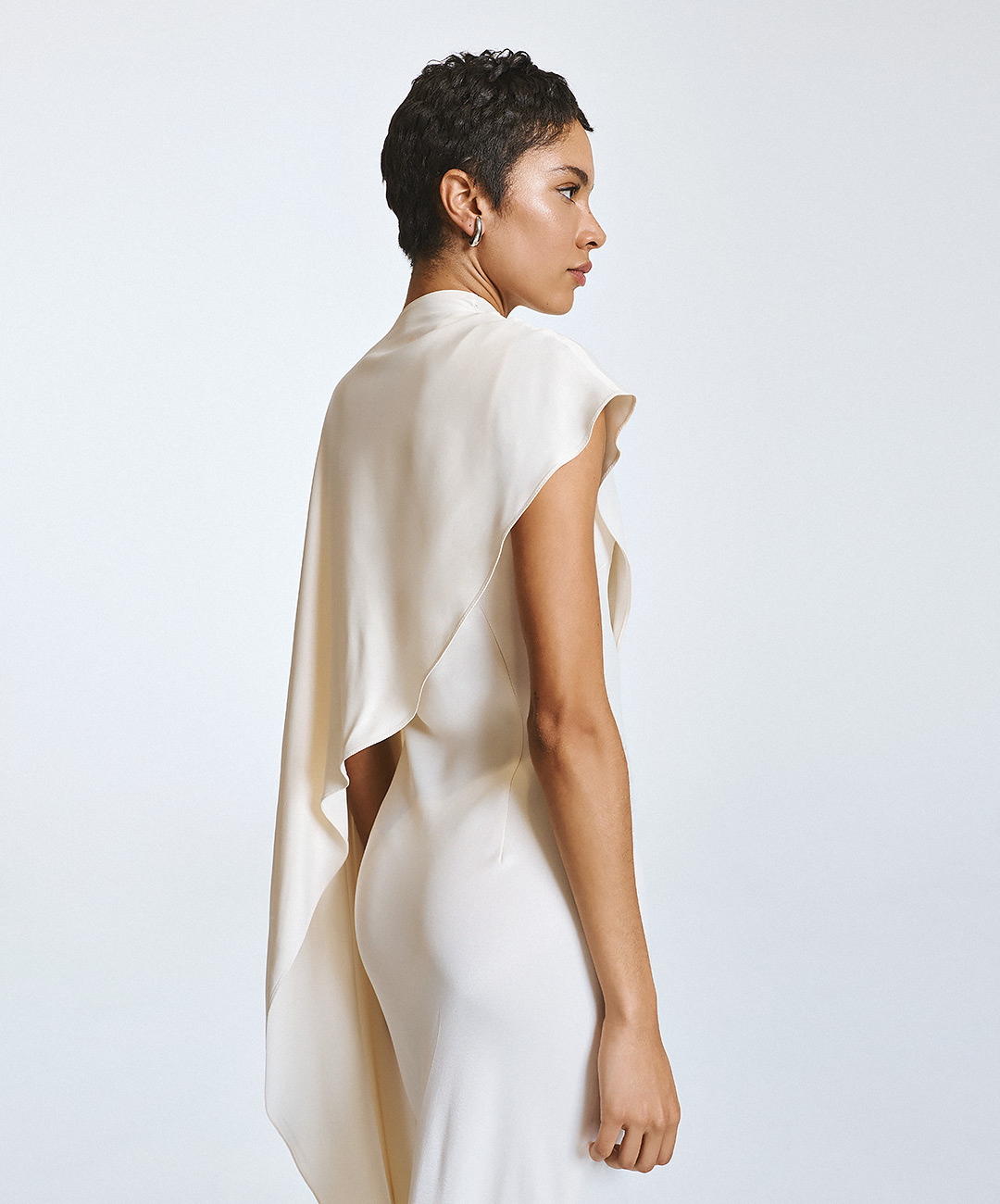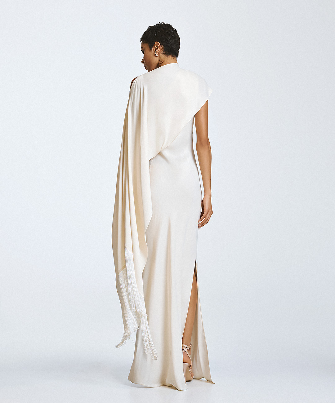 Vestido satén con capa flecos ACCESS FASHION (disponible en color lima y fresa)