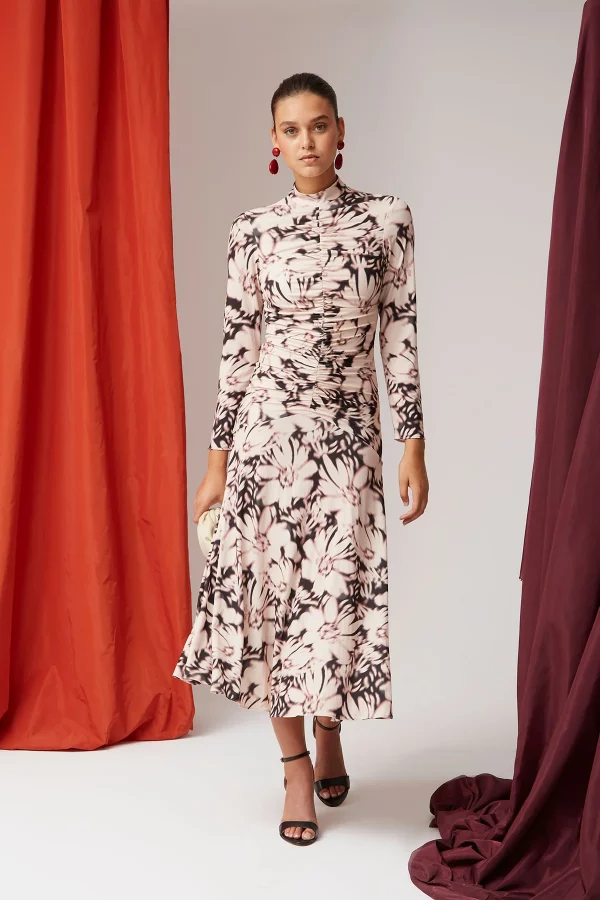 El Vestido Sora es una apuesta segura para invitadas que buscan elegancia y originalidad en una sola prenda. Confeccionado en un tejido ligero de estampado floral en contraste, este vestido se adapta con suavidad a la silueta, creando un efecto estilizador y sofisticado.