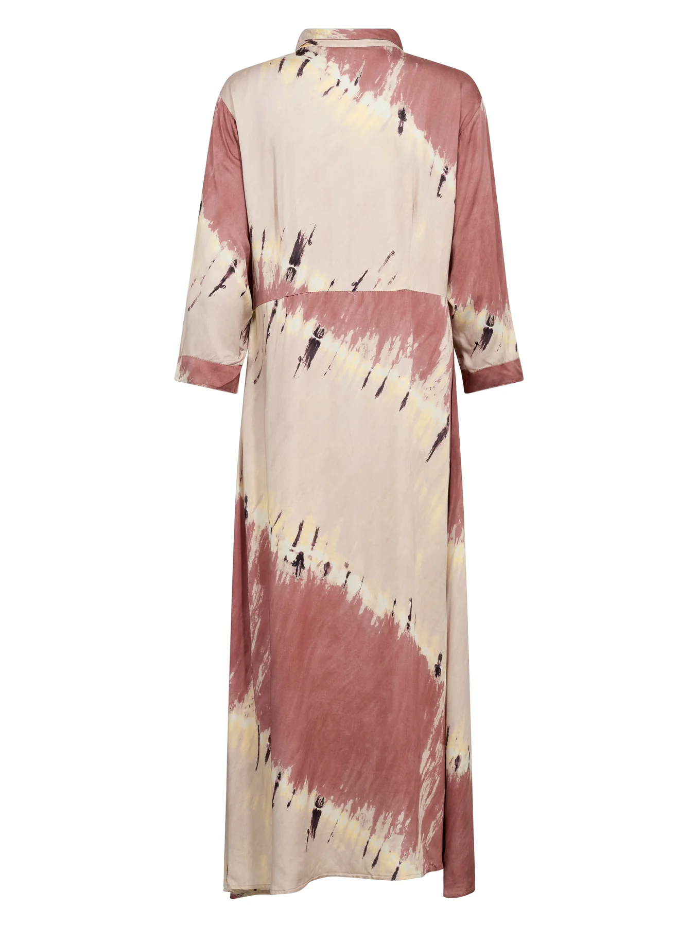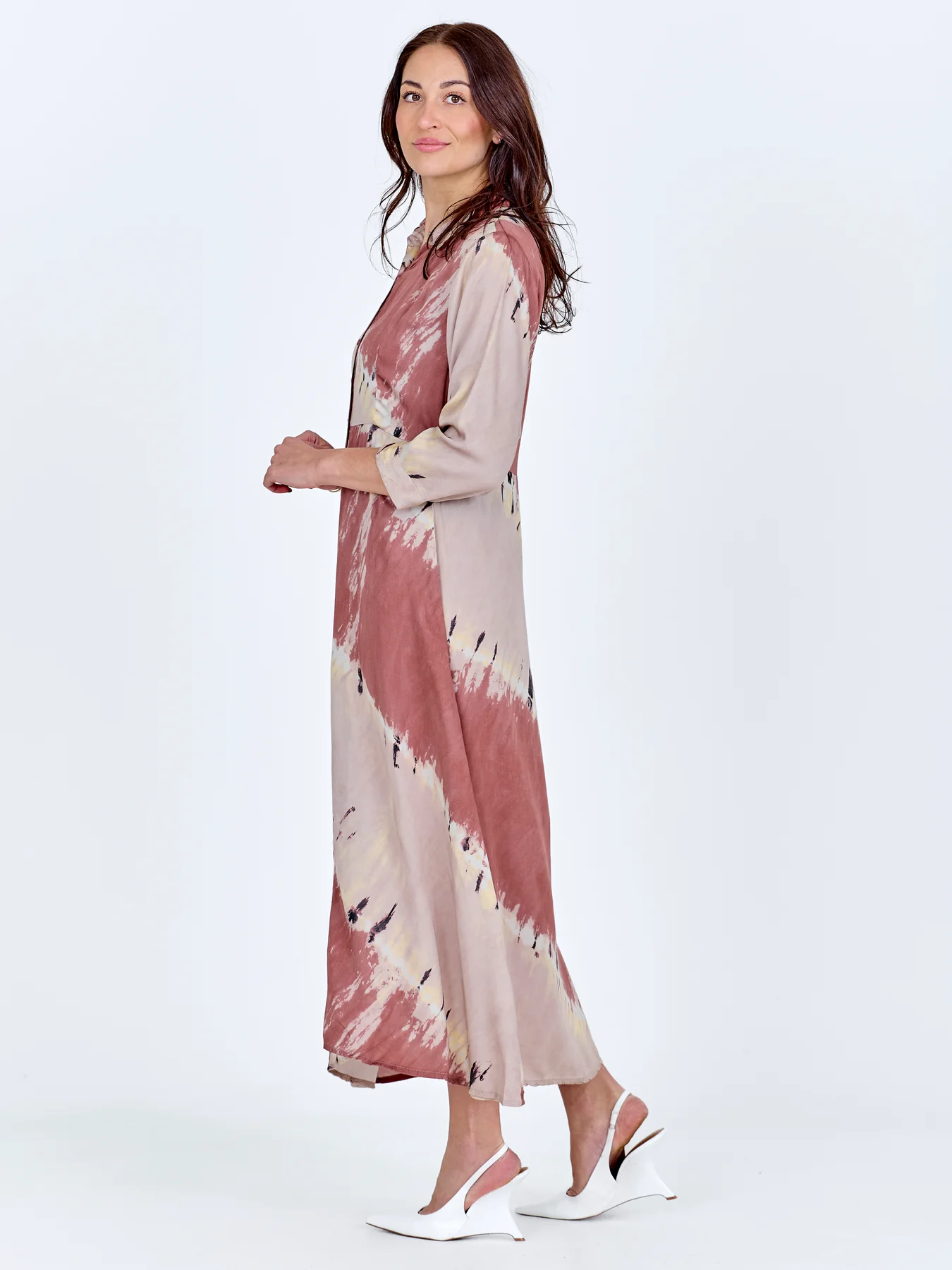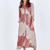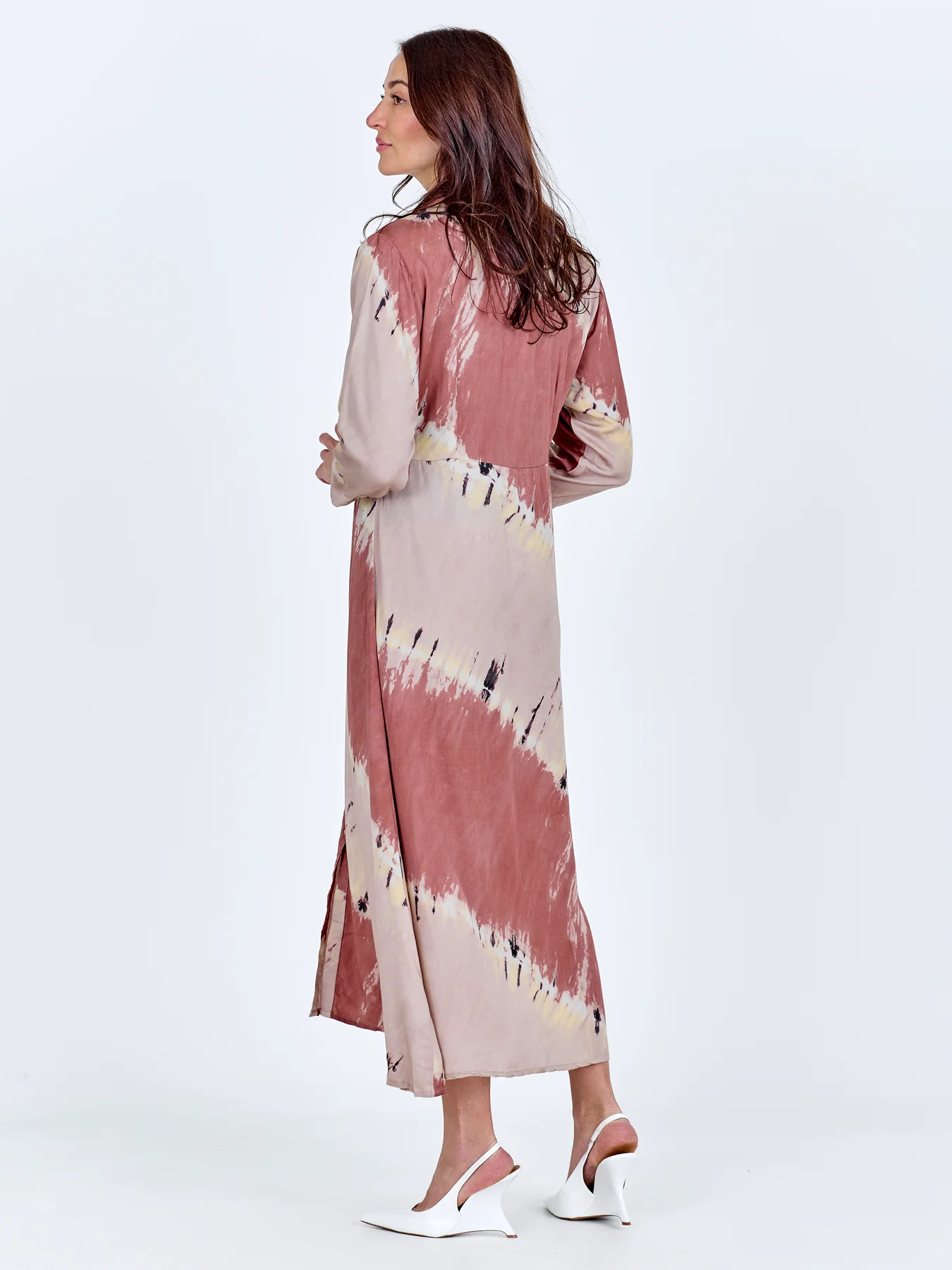Este vestido tiene un corte relajado pero elegante, con cierre de botones completo y un ajuste recto y ligero. Las mangas tres cuartos le dan un aspecto sereno, mientras que su largo permite lucirlo tanto abierto como cerrado. Llévalo solo como vestido o abierto sobre pantalones y una blusa para un look con capas.