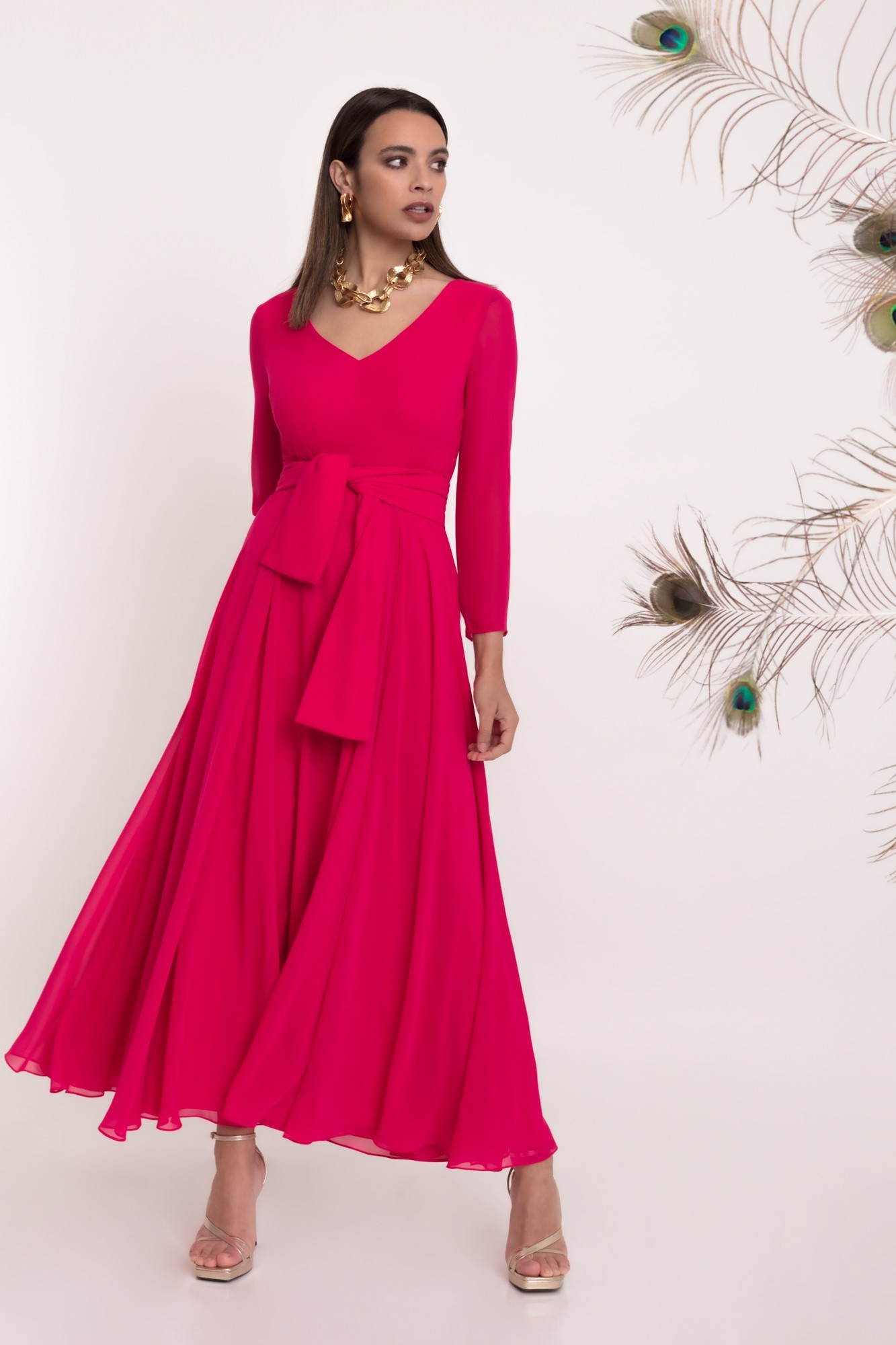 Nos queda claro con este elegante y favorecedor vestido en fucsia. La caída y fluidez de su tejido harán que no pases desapercibida. Este vestido en movimiento es sin lugar a dudas digno de admirar.