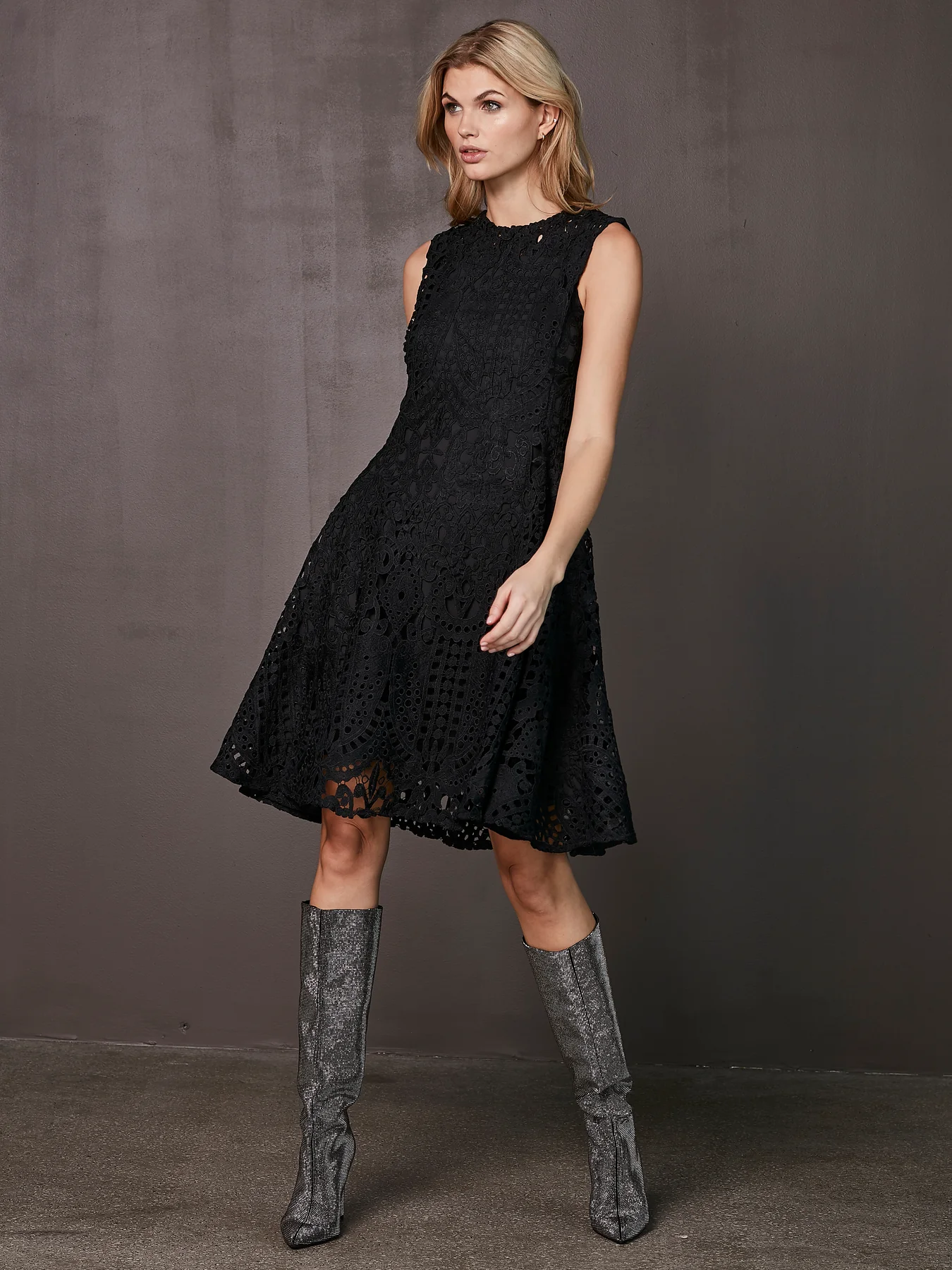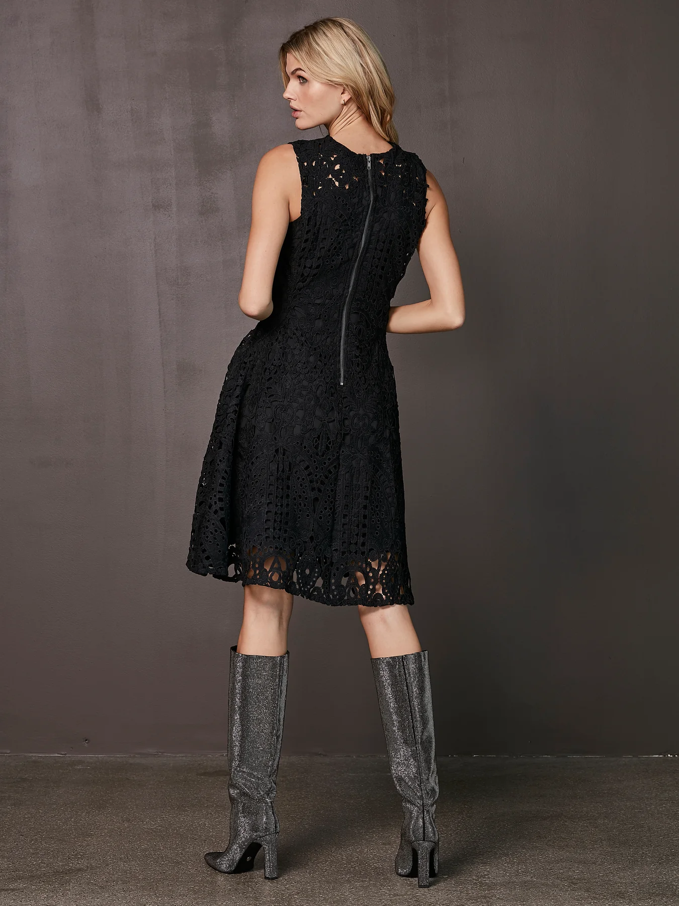 Estilice el vestido con elegantes tacones y joyas minimalistas para un look de fiesta completo.
